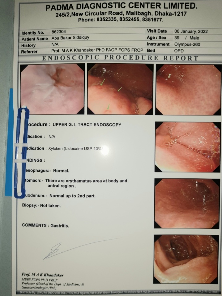 This reply is primarily to Abu Bakar Siddiquy but has general interest for anyone unclear about endoscopy findings.