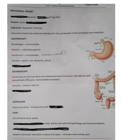 Thanks for your insights. Yes, I was off on PPI for the last 3 weeks. Done the procedure yesterday and sharing with you an initial report. The GI said nothing serious except mild Gastritis and some erosions, which seems to be healing. He has taken a biopsy for culture and the results will be ready in the next 7 - 10 days. Sharing with you (attached) an initial report of the procedure for your insights, please. He did not advise of any medications but stressed to keep a healthy diet with less wheat and carbs. Thanks